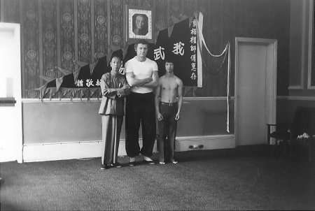 London, 1974: Unser Großmeister Si Kung Laszlo Banhegyi (mitte) mit seinem Meister Si Kung Ip Shui (links) und dessen Sohn David (rechts).